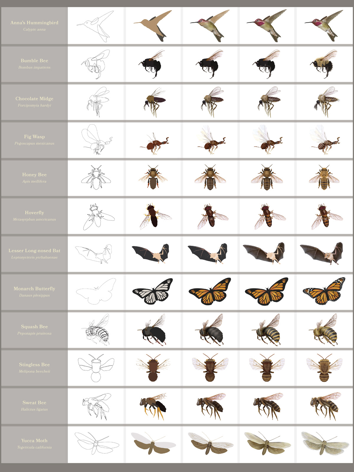 Chart showing the progress of each digitally painted pollinator in the poster.