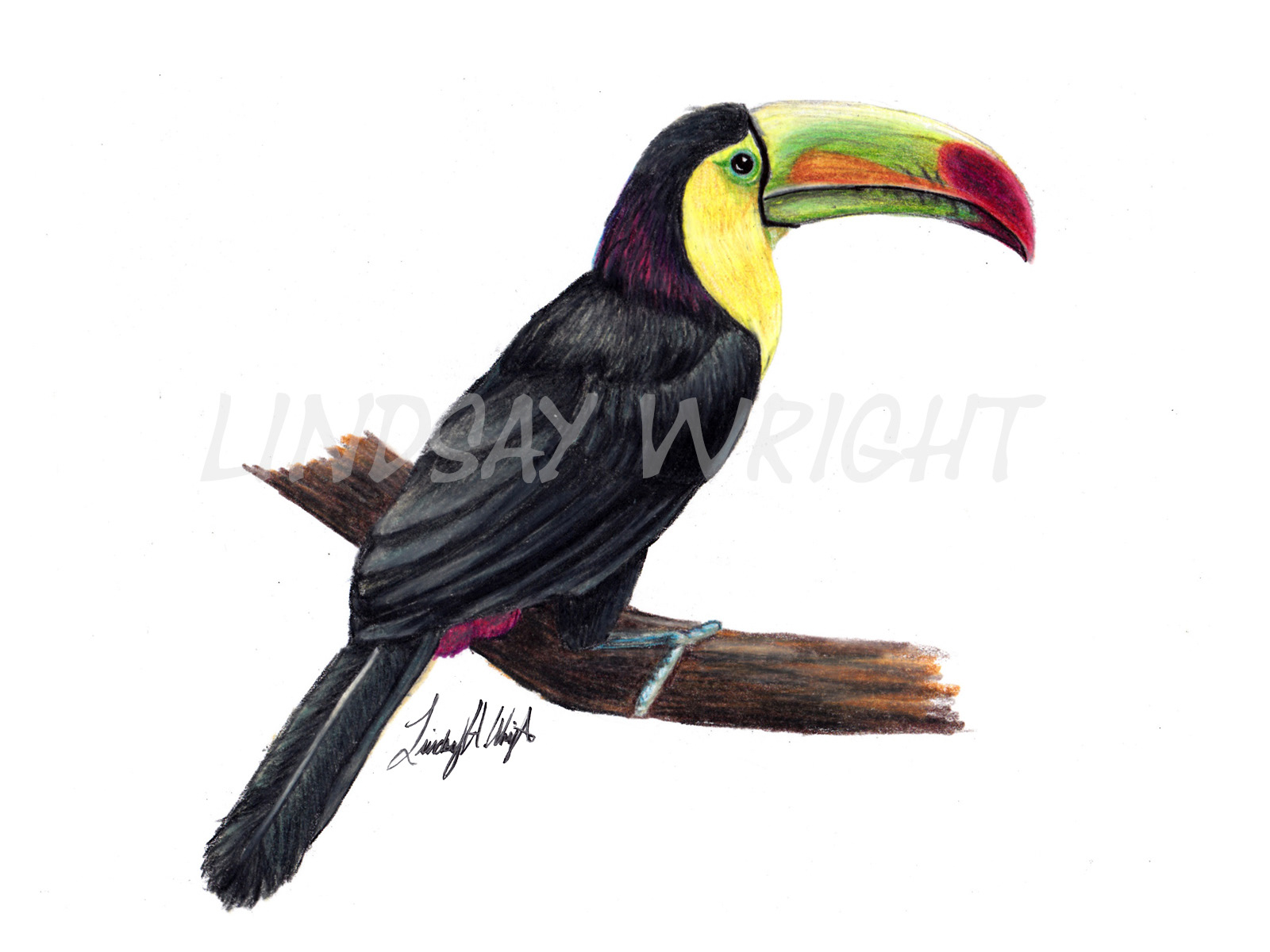 I was requested to create a realistic jungle scene for the archway to the children’s section of my hometown’s public library. The Installation consists of 63 detailed illustrations of tropical animals rendered in color pencil. The animals were sized to scale within a hand-drawn jungle background, which was assembled as a complete image in Adobe Photoshop. The printing and installation of the piece was donated by Printscape Imaging and Graphics. This permanent installation was donated in memory of local entrepreneur and community benefactor, Frank Sarris of Sarris Candies.